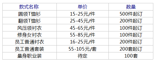 工作服是多少錢一件?我們的客服不知道怎么來(lái)面對(duì)客戶的詢價(jià),你們的工作服是多少錢一件?所以我們只有做一份參考價(jià)格表來(lái)供大家參考!希望能幫到大家!