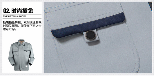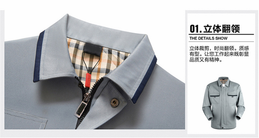 JL-QD204東莞廠服以淺灰色為主調(diào),采用立體翻領(lǐng)和時(shí)尚插袋來襯托時(shí)裝者的時(shí)尚動(dòng)感。采用夾克式的下擺,簡(jiǎn)約平整的設(shè)計(jì)使您更加干練