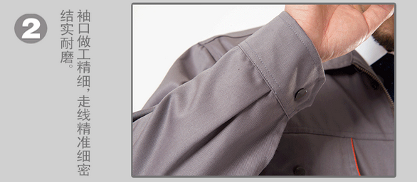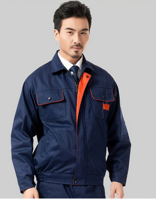 JL-QD248東莞工衣以藏藍(lán)色為主色,胸前采用橘色搭配,醒目,工業(yè)感強(qiáng)。前兜簡(jiǎn)單,走線細(xì)致,實(shí)用性強(qiáng)。左中腰間口袋均采用雙層設(shè)計(jì),傾斜線條,穩(wěn)重大氣 。