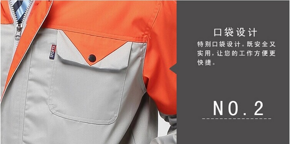 JL-QD253東莞工衣以藏藍色為主色,胸前衣兜采用紅色撞色拼接,走線細致,實用性強。左中腰間口袋均采用雙層設計,傾斜線條,穩(wěn)重大氣