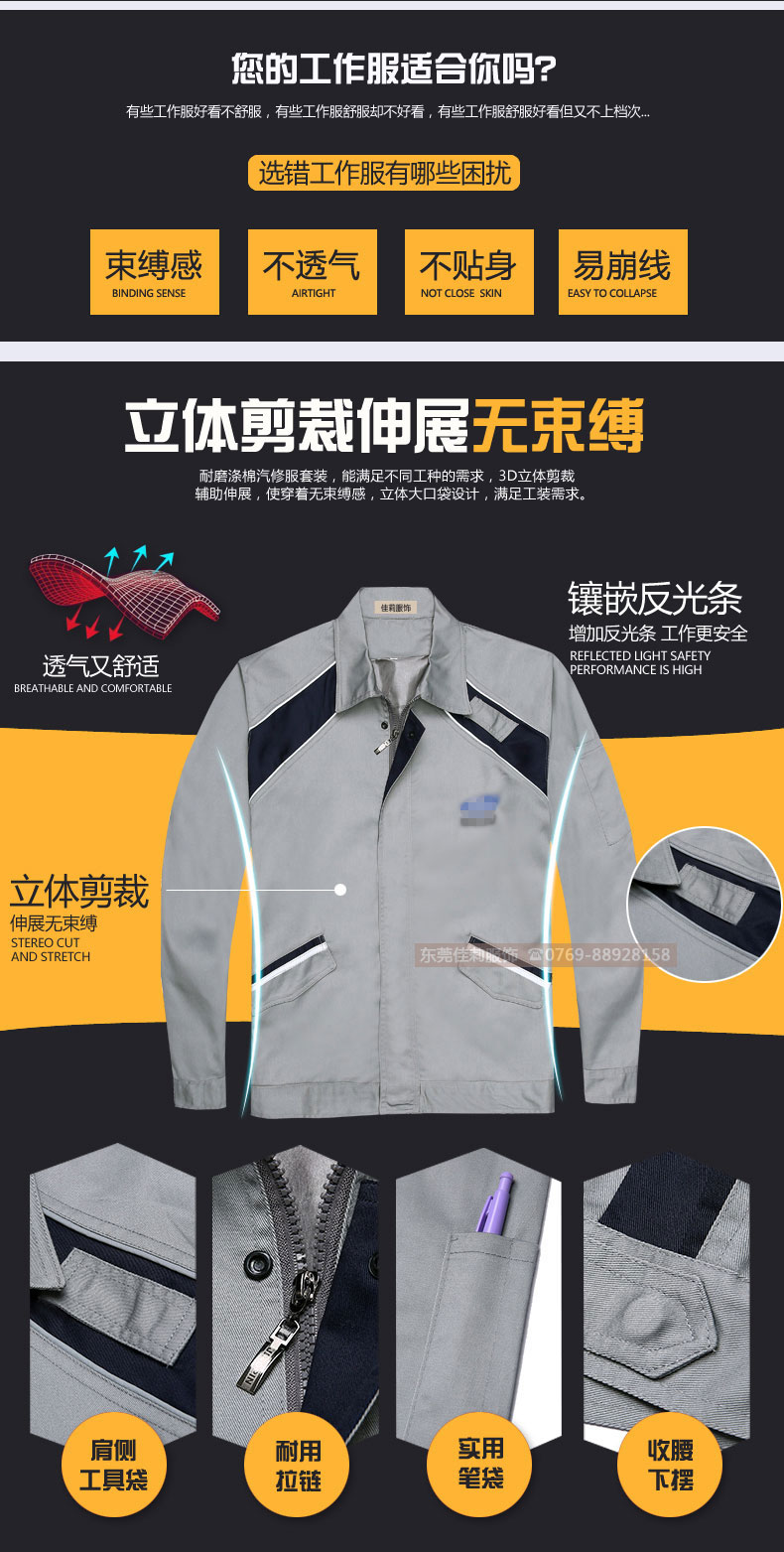 好的工作服直接反映您的企業(yè)形象!滿足80、90后對時尚 的渴望,拋棄傳統(tǒng)工作服呆板,僵化。我們只做最好的工作服!