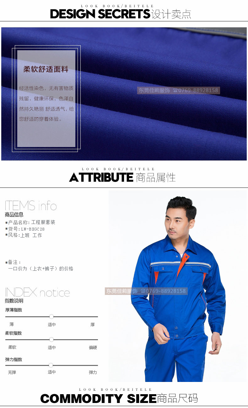 工人施工工作服 藍(lán)色工作服套裝 JL-GC009