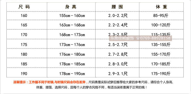 155(S)、165(M)、170(L)、175(XL)、180(XXL)、185(XXL)