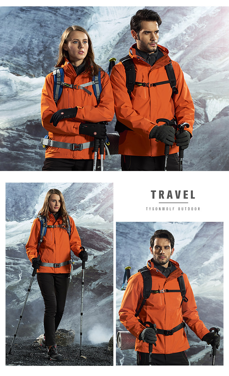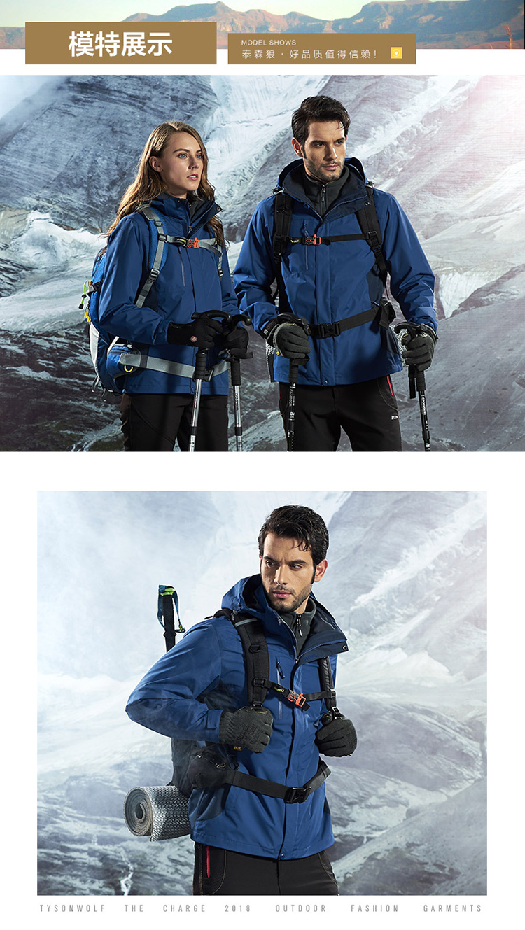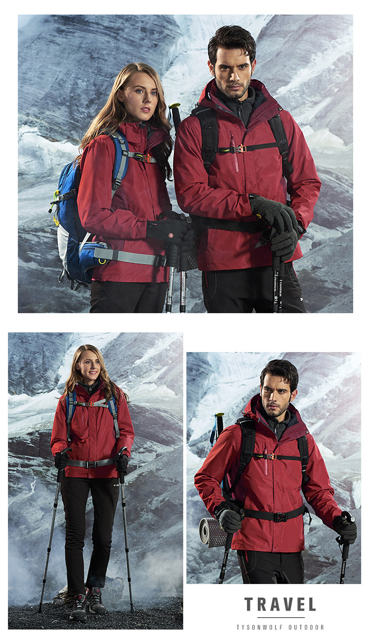 防風(fēng)防雨,鎖溫保暖,腋下透氣網(wǎng)洞,3合1沖鋒衣,內(nèi)膽可拆卸