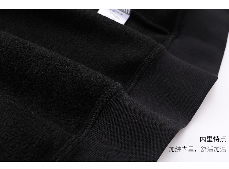 面料采用親膚柔軟面料,選用克重高達(dá)300g的抓絨面料。里層加絨,衣服雙側(cè)口袋,滿足不同身材,不松不緊,穿著舒適。